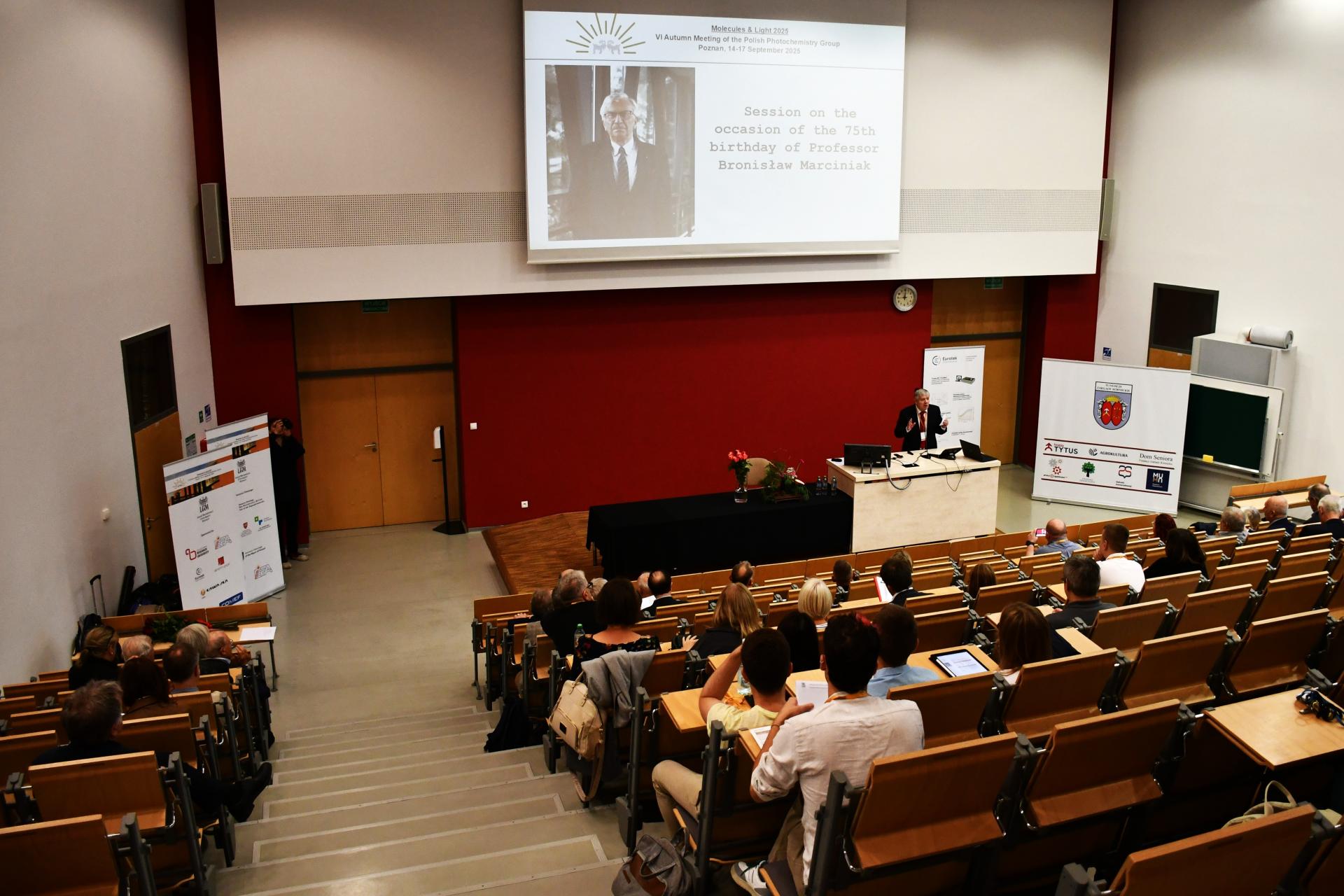 Jubileuszowa sesja z okazji 75. urodzin prof. Bronisława Marciniaka, wybitnego chemika i byłego Rektora UAM towarzyszyła odbywającej się w dniach 14–17 września na Wydziale Chemii UAM szóstej edycji międzynarodowej konferencji Molecules&Light. W sesji wziął udział Wojciech Jankowiak, Wicemarszałek Województwa Wielkopolskiego.