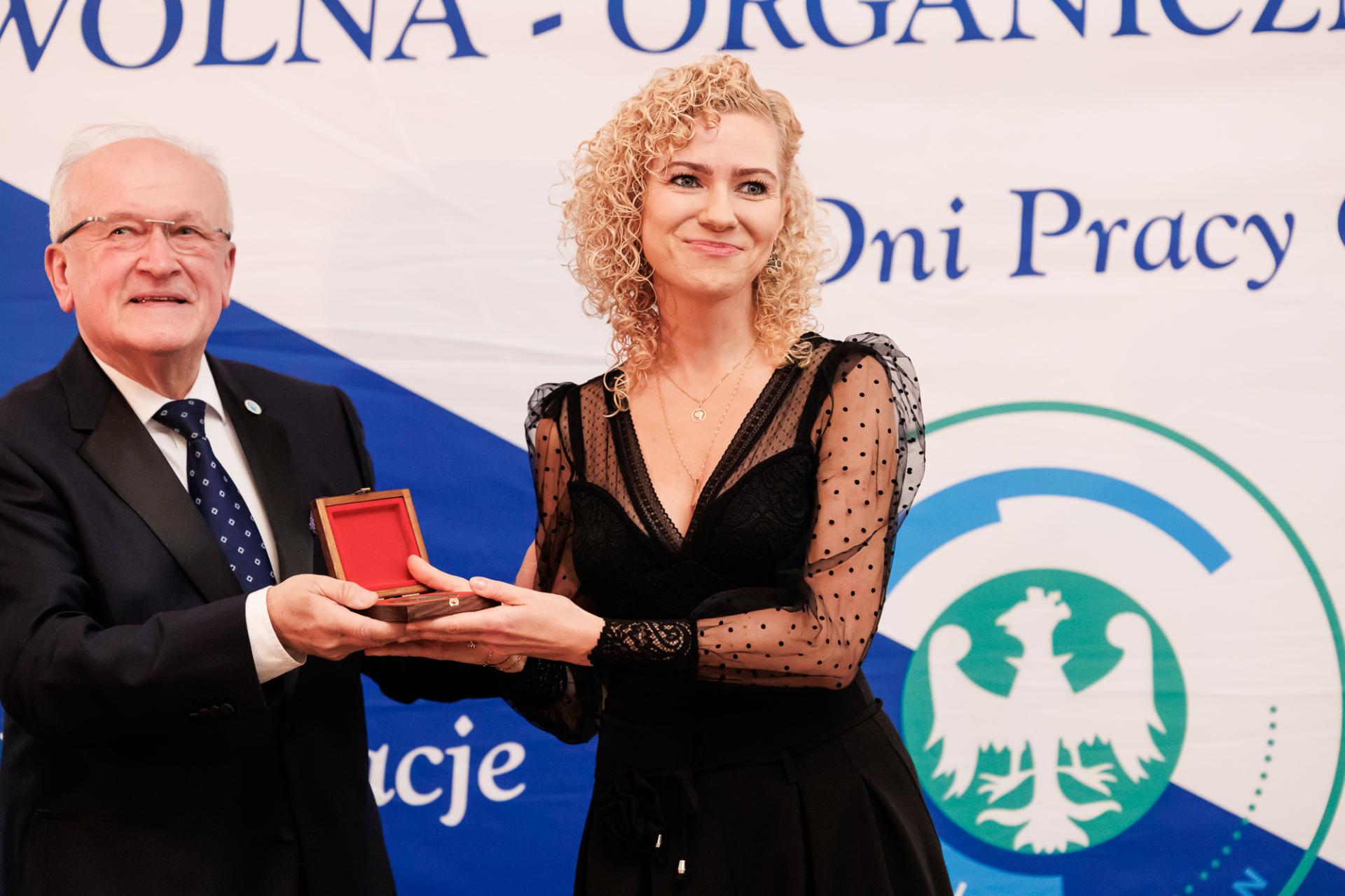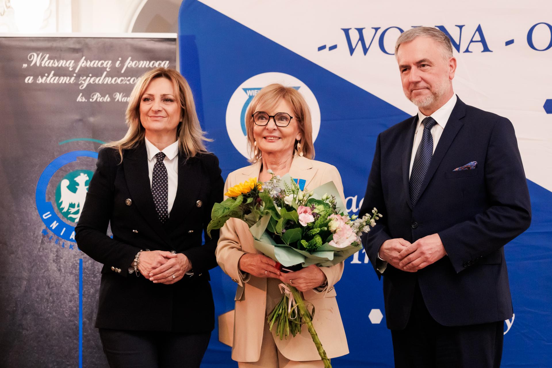 Marszałek Marek Woźniak wraz z Tatianą Sokołowską, Przewodniczącą Sejmiku Województwa Wielkopolskiego wręczył też Odznakę Honorową „Za Zasługi dla województwa wielkopolskiego” Małgorzacie Waszak-Klepce, obecnej Sekretarz Generalnej Unii Wielkopolan, pełniącej m.in. funkcję Radnej Miasta Konina w latach 2002-2006, Starosty Konińskiej w latach w latach 2011-2014 oraz Przewodniczącej Sejmiku Województwa Wielkopolskiego w latach 2019-2024. – To jest odznaczenie dla wyjątkowej osoby, bardzo zasłużonej dla Wielkopolski poprzez swoją działalność, najpierw w jej wschodniej części. Funkcje Przewodniczącej Sejmiku pełniła z ogromną godnością i bardzo wysoką skutecznością wobec żywiołów politycznych. Wiele dobrych rzeczy wraz z tą kadencją się zdarzyło – mówił Marszałek, odznaczając Małgorzatę Waszak-Klepkę.