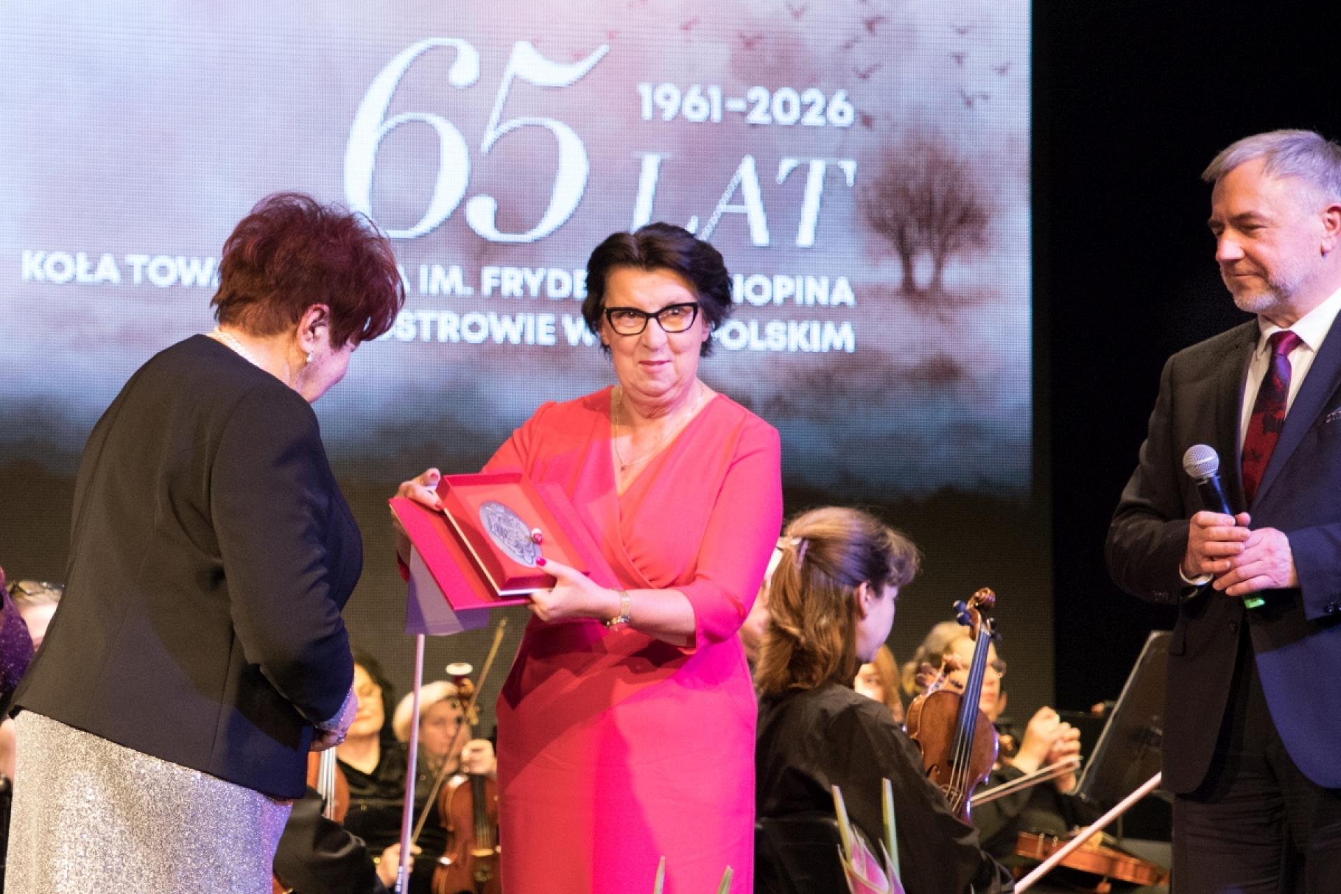 Ostrowskie Koło Towarzystwa im. Fryderyka Chopina, największe i najstarsze Koło terenowe Towarzystwa im. Fryderyka Chopina z siedzibą w Warszawie, obchodzi w tym roku 65-lecie swojej działalności. Z tej okazji 21 lutego w Ostrowskim Centrum Kultury odbyła się gala jubileuszowa wypełniona muzyką i wspomnieniami. Marszałek Marek Woźniak uhonorował najwyższym regionalnym odznaczeniem Koło oraz jego Przewodniczącą.