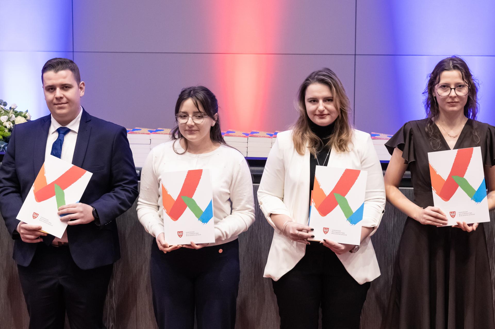 – Tak licznie zgromadzonych stypendystów jeszcze tutaj nie widzieliśmy. To dowód na to, że nasz program stypendialny się rozwija. Liczba stypendiów wskazuje, że liczne grono zasługuje na docenienie. Wystarczy spojrzeć do aplikacji, by zobaczyć, jak wiele dokonań znajduje odzwierciedlenie w Państwa aktywnościach – czy to związanych z udziałem w różnych konkursach i olimpiadach, czy w pracach naukowych. Takich osób chcielibyśmy widzieć jak najwięcej w społeczeństwach, zwłaszcza wśród młodych ludzi, bo to od Państwa zaangażowania i wiedzy zależeć będzie nasza wspólna przyszłość. Bez tego pozostaniemy społeczeństwem pasywnym i niekonkurencyjnym w świecie – mówił do stypendystów podczas gali Marszałek Marek Woźniak.