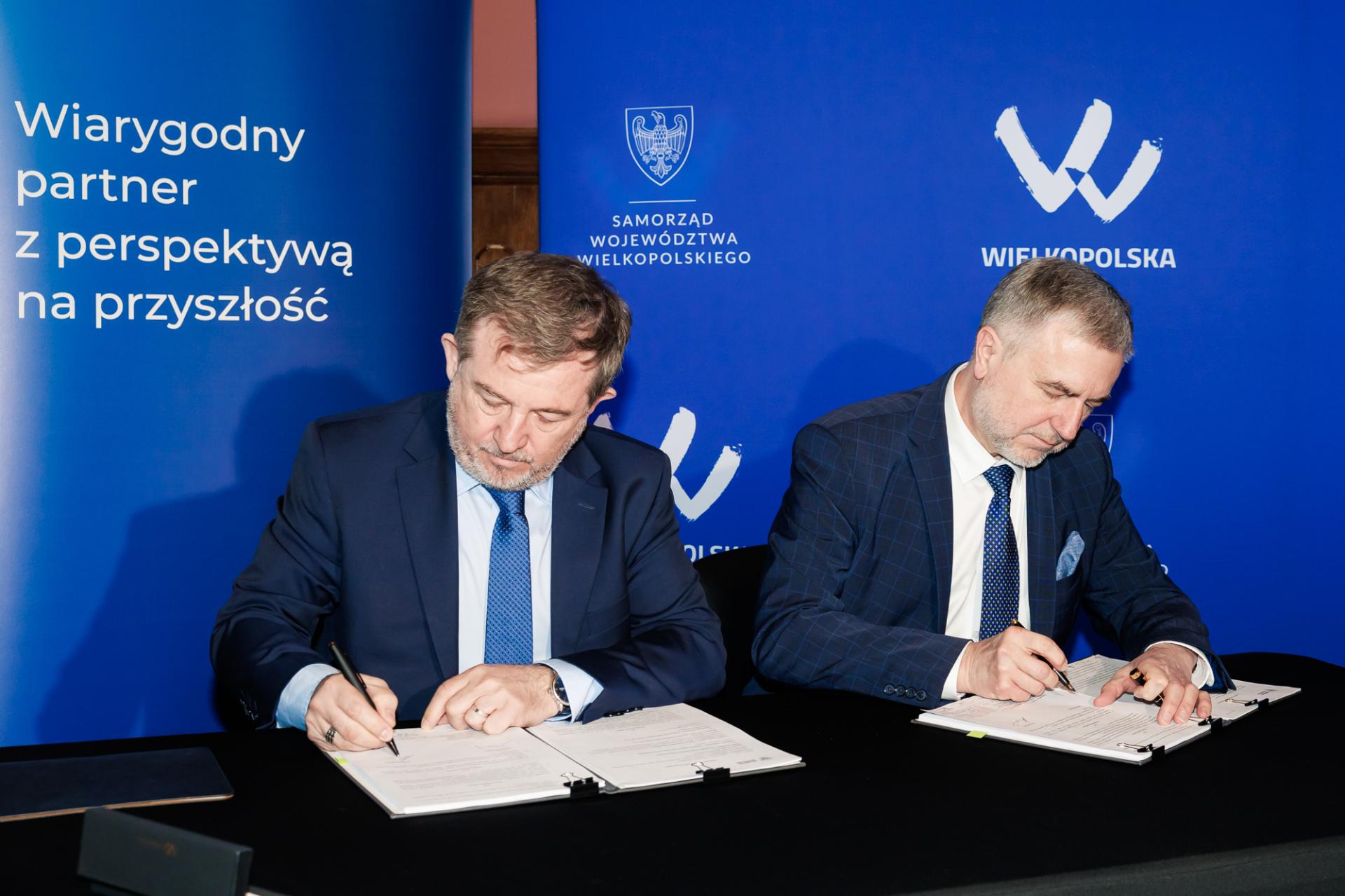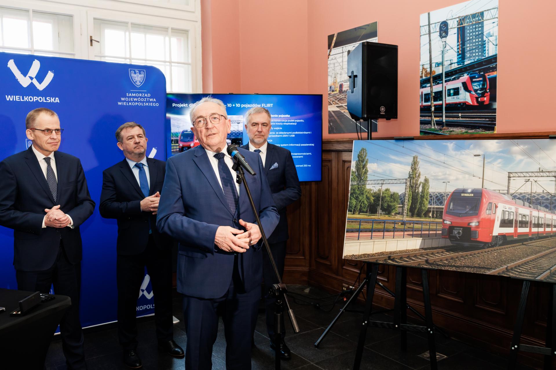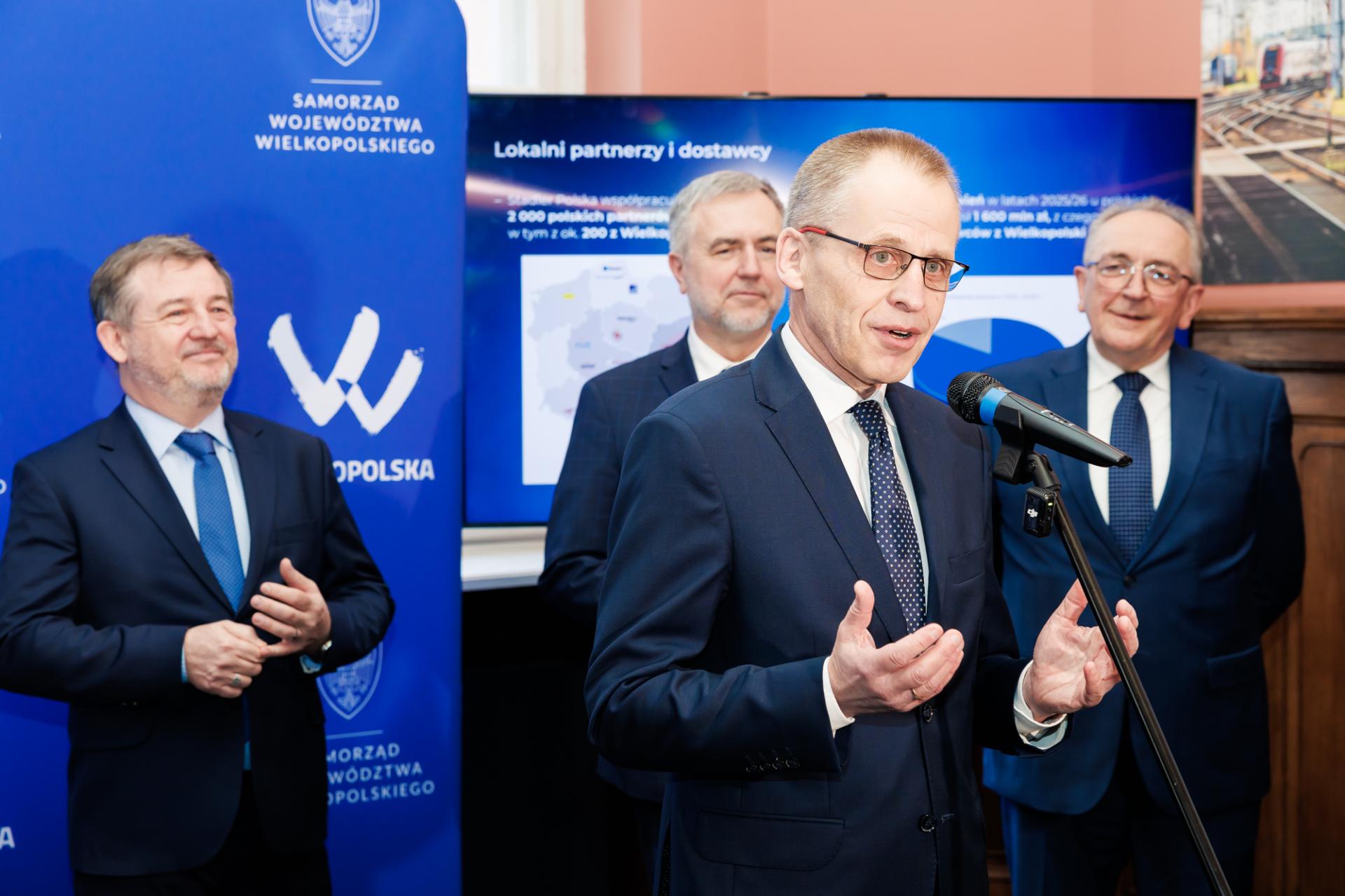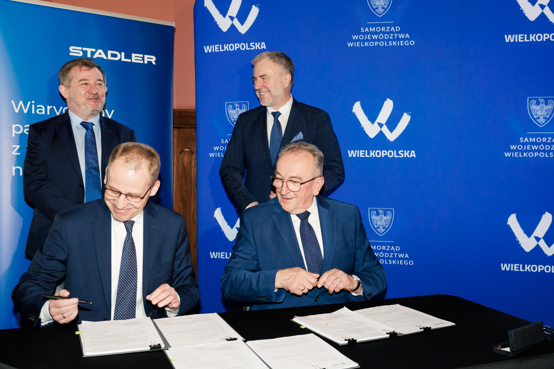 Bezpieczne, wygodne, dobrze wyposażone i ekonomiczne w użytkowaniu – takie mają być nowe pociągi, które Samorząd Województwa Wielkopolskiego właśnie zamówił u producenta. Umowę na dziesięć pociągów, z opcją na zakup do dziesięciu kolejnych pojazdów, 12 marca 2026 roku na Dworcu Letnim w Poznaniu podpisali Marek Woźniak, Marszałek Województwa Wielkopolskiego i Wojciech Jankowiak, Wicemarszałek Województwa Wielkopolskiego, a w imieniu firmy Stadler Polska podpisy złożyli Radosław Banach, Prezes Zarządu oraz Arkadiusz Świerkot, Członek Zarządu ds. Sprzedaży. Wartość podstawowego zamówienia wynosi ponad 550 mln zł, co sprawia, że jest to największy kontrakt w historii Samorządu Województwa Wielkopolskiego.