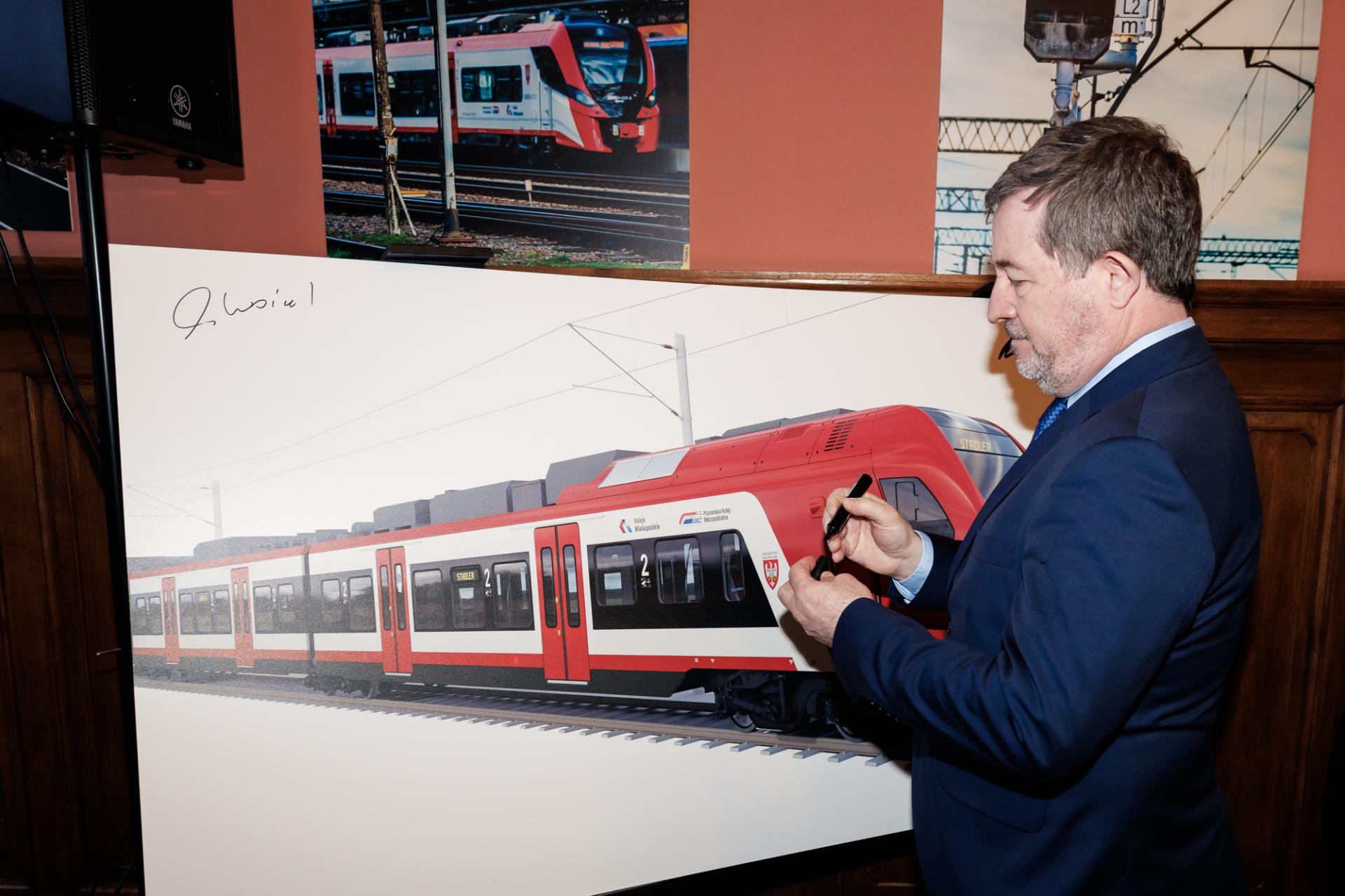 - Przetarg opierał się na trzech podstawowych kryteriach: to cena, termin realizacji i masa pociągów. Wszystkie te trzy elementy są ogromnie ważne. Oferta Stadler Polska okazała się najlepsza i najbardziej atrakcyjna. Jest to dla nas pewna nowość, bo dotychczas eksploatowaliśmy głównie pociągi produkcji firmy PESA Bydgoszcz. Pociągi Stadlera jeżdżą już po Polsce, w województwie łódzkim, śląskim i mazowieckim, a teraz będą jeździły i u nas. To są bardzo nowoczesne jednostki – długie, pojemne i lekkie. Jest to największy kontrakt w historii Samorządu Województwa Wielkopolskiego, życzmy sobie, aby w przyszłości udało się jeszcze takie kontrakty realizować – zaznaczył Wicemarszałek Wojciech Jankowiak.